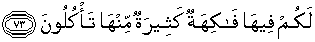 73. Di dalam surga itu ada buah-buahan yang banyak untukmu yang sebahagiannya kamu makan.
