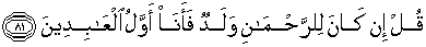 81. Katakanlah, jika benar Tuhan Yang Maha Pemurah mempunyai anak, maka akulah (Muhammad) orang yang mula-mula memuliakan (anak itu).