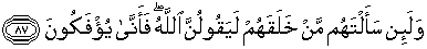 87. Dan sungguh jika kamu bertanya kepada mereka: "Siapakah yang menciptakan mereka, niscaya mereka menjawab: "Allah", maka bagaimanakah mereka dapat dipalingkan (dari menyembah Allah )?,