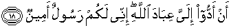 18. (dengan berkata): "Serahkanlah kepadaku hamba-hamba Allah (Bani Israil yang kamu perbudak). Sesungguhnya aku adalah utusan (Allah) yang dipercaya kepadamu,