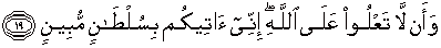 19. dan janganlah kamu menyombongkan diri terhadap Allah. Sesungguhnya aku datang kepadamu dengan membawa bukti yang nyata.