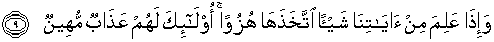9. Dan apabila dia mengetahui barang sedikit tentang ayat-ayat Kami, maka
