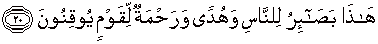 20. Al Quran ini adalah pedoman bagi manusia, petunjuk dan rahmat bagi kaum yang meyakini.