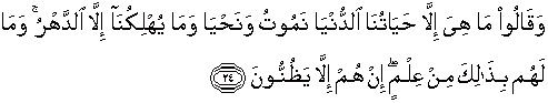 24. Dan mereka berkata: "Kehidupan ini tidak lain hanyalah kehidupan di dunia