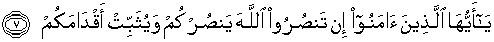 7. Hai orang-orang mukmin, jika kamu menolong (agama) Allah, niscaya Dia akan menolongmu dan meneguhkan kedudukanmu.