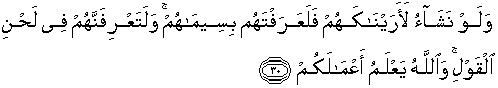 30. Dan kalau Kami kehendaki, niscaya Kami tunjukkan mereka kepadamu