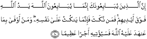 ayat 18 surat ini, karena itu disebut Bai'atur Ridwan. Bai'atur Ridwan