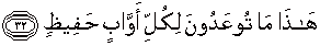 32. Inilah yang dijanjikan kepadamu, (yaitu) kepada setiap hamba yang selalu kembali (kepada Allah) lagi memelihara (semua peraturan-peraturan-Nya)