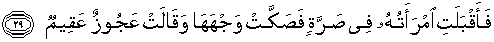 29. Kemudian isterinya datang memekik lalu menepuk mukanya sendiri seraya berkata: "(Aku adalah) seorang perempuan tua yang mandul."