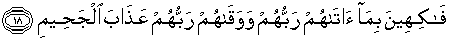 18. mereka bersuka ria dengan apa yang diberikan kepada mereka oleh Tuhan mereka; dan Tuhan mereka memelihara mereka dari azab neraka.