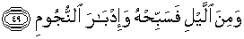 49. dan bertasbihlah kepada-Nya pada beberapa saat di malam hari dan di waktu terbenam bintang-bintang (di waktu fajar).