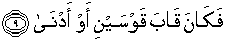 9. maka jadilah dia dekat (pada Muhammad sejarak) dua ujung busur panah atau lebih dekat (lagi).
