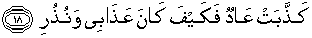 18. Kaum 'Aad pun mendustakan(pula). Maka alangkah dahsyatnya azab-Ku dan ancaman-ancaman-Ku.