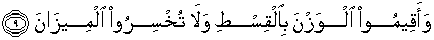 9. Dan tegakkanlah timbangan itu dengan adil dan janganlah kamu mengurangi neraca itu.