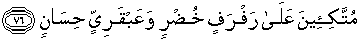 76. Mereka bertelekan pada bantal-bantal yang hijau dan permadani-permadani yang indah.