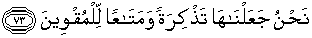 73. Kami jadikan api itu untuk peringatan dan bahan yang berguna bagi musafir di padang pasir.