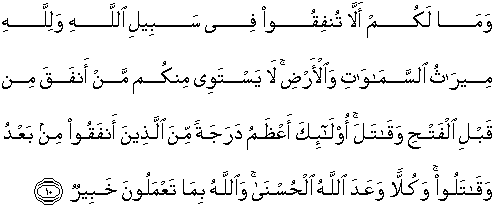 10. Dan mengapa kamu tidak menafkahkan (sebagian hartamu) pada