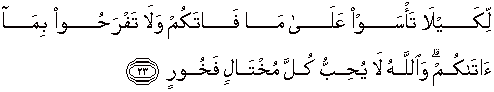 23. (Kami jelaskan yang demikian itu) supaya kamu jangan berduka
