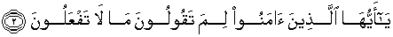 2. Wahai orang-orang yang beriman, kenapakah kamu mengatakan sesuatu yang tidak kamu kerjakan?