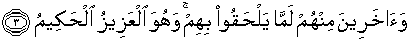 3. dan (juga) kepada kaum yang lain dari mereka yang belum berhubungan dengan mereka. Dan Dia-lah Yang Maha Perkasa lagi Maha Bijaksana.