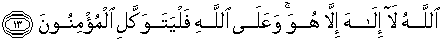 13. (Dia-lah) Allah tidak ada Tuhan selain Dia. Dan hendaklah orang-orang mukmin bertawakkal kepada Allah saja.