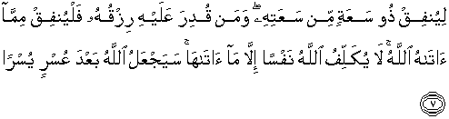 7. Hendaklah orang yang mampu memberi nafkah menurut kemampuannya.