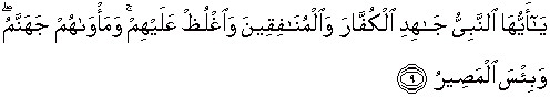 9. Hai Nabi, perangilah orang-orang kafir dan orang-orang munafik dan bersikap keraslah terhadap mereka. Tempat mereka adalah jahannam dan itu adalah seburuk-buruknya tempat kembali.
