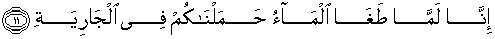 11. Sesungguhnya Kami, tatkala air telah naik (sampai ke gunung) Kami bawa (nenek moyang) kamu