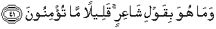 41. dan Al Quran itu bukanlah perkataan seorang penyair. Sedikit sekali kamu beriman kepadanya.