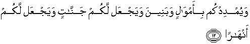 12. dan membanyakkan harta dan anak-anakmu, dan mengadakan untukmu kebun-kebun dan mengadakan (pula di dalamnya) untukmu sungai-sungai.