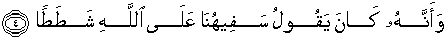 4. Dan bahwasanya: orang yang kurang akal daripada kami selalu mengatakan (perkataan) yang melampaui batas terhadap Allah