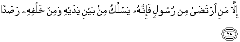 27. Kecuali kepada rasul yang diridhai-Nya, maka sesungguhnya Dia mengadakan penjaga-penjaga (malaikat) di muka dan di belakangnya.