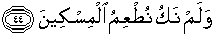44. dan kami tidak (pula) memberi makan orang miskin,