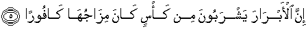 5. Sesungguhnya orang-orang yang berbuat kebajikan minum dari gelas (berisi minuman) yang campurannya adalah air kafur
