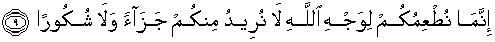 9. Sesungguhnya kami memberi makanan kepadamu hanyalah untuk mengharapkan keridhaan Allah, kami tidak menghendaki balasan dari kamu dan tidak pula (ucapan) terima kasih.