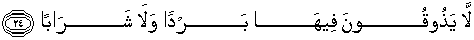24. mereka tidak merasakan kesejukan di dalamnya dan tidak (pula mendapat) minuman,