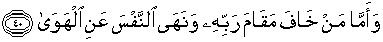 40. Dan adapun orang-orang yang takut kepada kebesaran Tuhannya dan menahan diri dari keinginan hawa nafsunya,