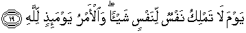19. (Yaitu) hari (ketika) seseorang tidak berdaya sedikitpun untuk menolong orang lain. Dan segala urusan pada hari itu dalam kekuasaan Allah.