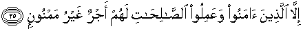 25. tetapi orang-orang yang beriman dan beramal saleh, bagi mereka pahala yang tidak putus-putusnya.
