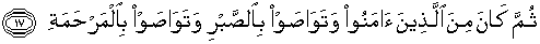 17. Dan dia (tidak pula) termasuk orang-orang yang beriman dan saling berpesan untuk bersabar dan saling berpesan untuk berkasih sayang.