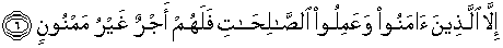 6. kecuali orang-orang yang beriman dan mengerjakan amal saleh; maka bagi mereka pahala yang tiada putus-putusnya.
