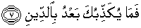 7. Maka apakah yang menyebabkan kamu mendustakan (hari) pembalasan sesudah (adanya keterangan-keterangan) itu?